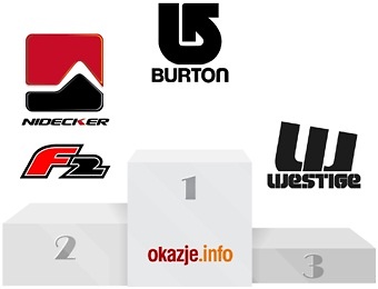 Podobnie, jak ma to miejsce w przypadku nart – również w gronie najpopularniejszych producentów desek snowboardowych znalazły się marki, sygnujące swoim logo sprzęt wysokiej jakości i tym samym cieszące się wśród snowboardzistów dużym uznaniem. Liderem rankingu został istniejący od blisko 40 lat, amerykański koncern Burton, określany często mianem najbardziej rozpoznawalnej firmy snowboardowej świata. Na drugim miejscu, ex aequo uplasowały się istniejąca od 1981 roku, niemiecka firma F2 oraz mogący pochwalić się 20-letnią tradycją, szwajcarski Nidecker. Ostatnie miejsce na podium przypadło w udziale istniejącej od 2001 roku, czeskiej marce Westige.