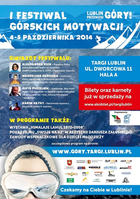 Więcej informacji o Festiwalu i jego pełny program znajduje się na stronie: www.gory.targi.lublin.pl. Zapraszają organizatorzy: Targi Lublin S.A. i Klub Wysokogórski Lublin.