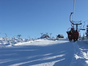 W Przełęczy Staropolskiej. Pokrywa śniegu wynosi dokładnie 80 cm, czynne są wyciągi Bartuś i Biały Krzyż, gdzie początkiem stycznia zainaugurowano rozpoczęcie funkcjonowania profesjonalnego snowparku.